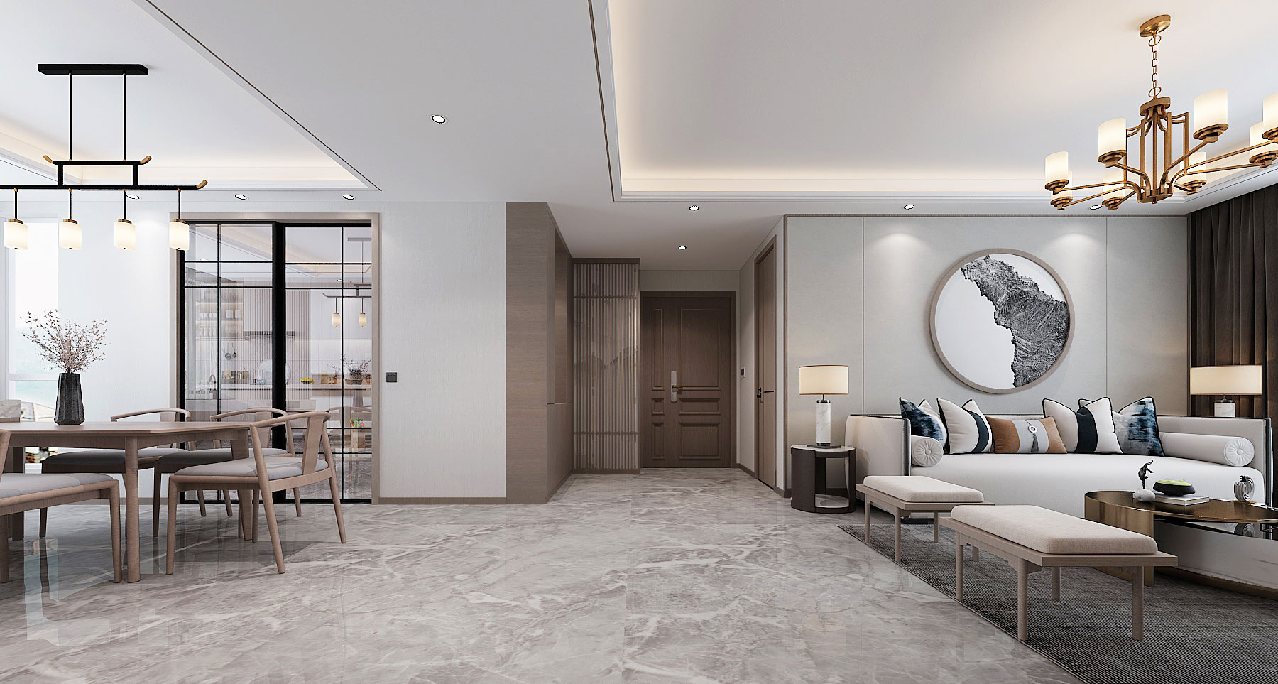 本案特點(diǎn):以中式風(fēng)的樣式為基調(diào),配合現(xiàn)代的簡約、復(fù)古、雅致打造不一樣的空間效果。既有傳統(tǒng)的穩(wěn)重、大氣,又有現(xiàn)代的清爽、簡約。實木家具和仿古裝飾的組合更是體現(xiàn)出新中式的風(fēng)骨和韻味。