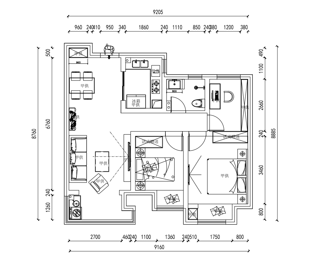 戶(hù)型為標(biāo)準(zhǔn)的小三室,空間不大,所以處處都要安排的合理,南北通透加上三開(kāi)間朝南,在光線(xiàn)上不用考慮太多,更注重空間的分配