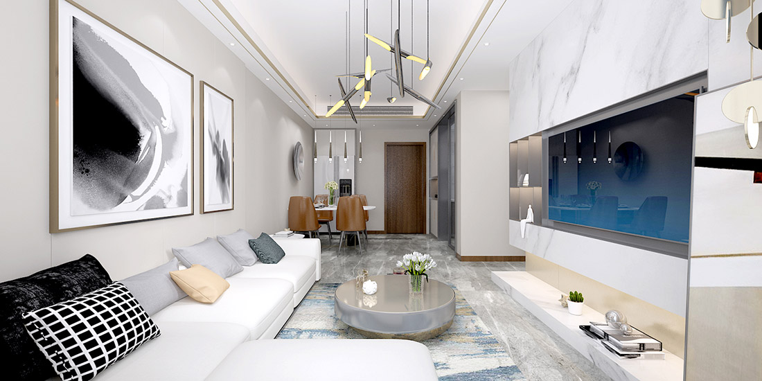 本案特點(diǎn):按戶(hù)型以及業(yè)務(wù)喜好做現(xiàn)代風(fēng)格,通過(guò)頂面及墻面錯(cuò)層以及家具分割出不同的功能空間,沒(méi)有過(guò)多復(fù)雜的造型,頂面線(xiàn)條收邊的做點(diǎn)綴,整體以灰白色調(diào)為主,家具色彩映襯相結(jié)合,增大空間感且不失整潔明亮,給業(yè)主一種舒適感