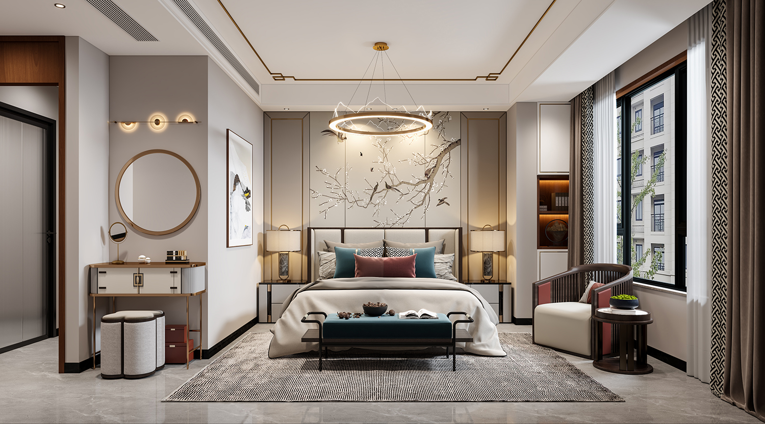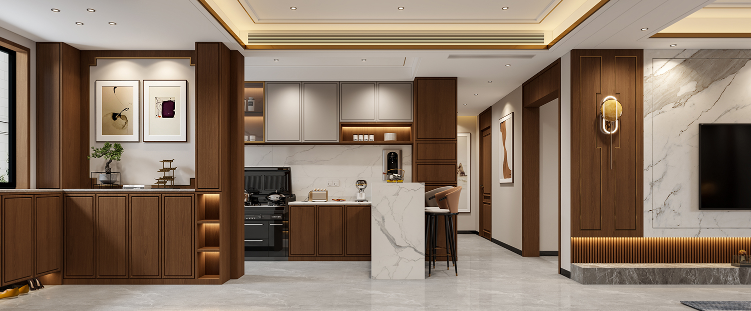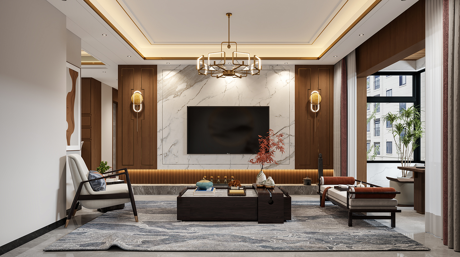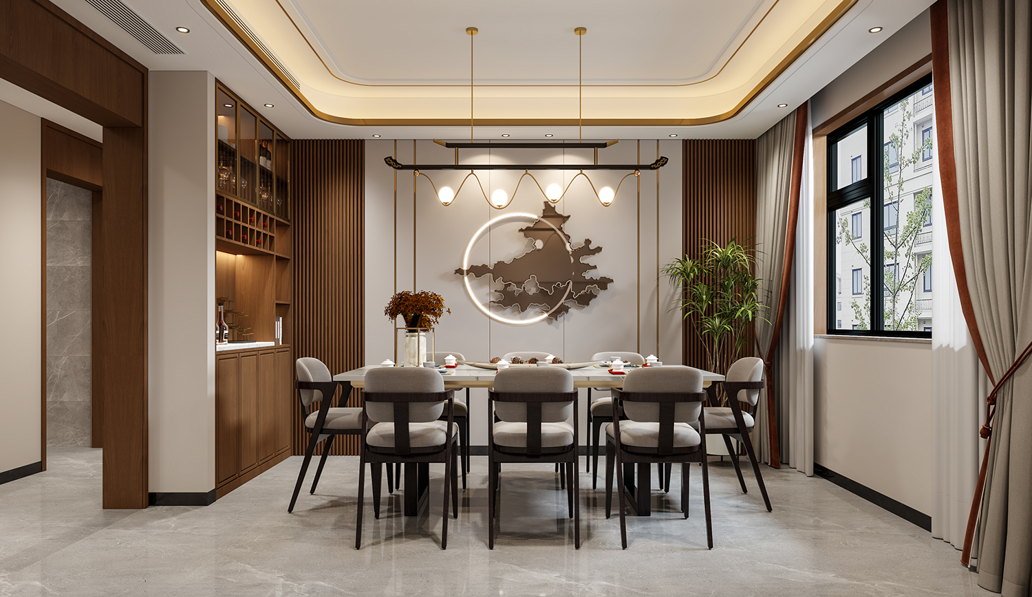 本案特點(diǎn):新中式與現(xiàn)代輕奢的大膽結(jié)合體現(xiàn)出不一樣的風(fēng)格體感