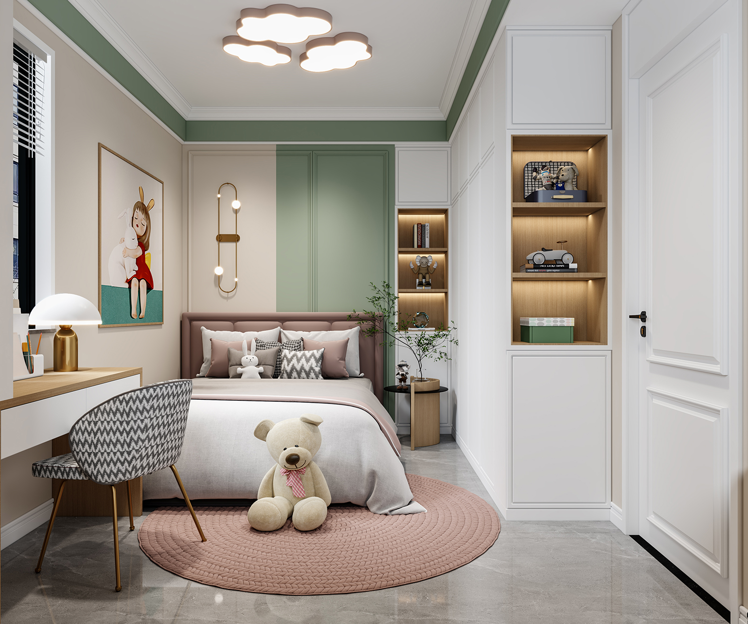 設(shè)計(jì)理念:滿足客戶新中式要求的同時(shí)兼顧與孩子比較喜歡的年輕的因素結(jié)合
