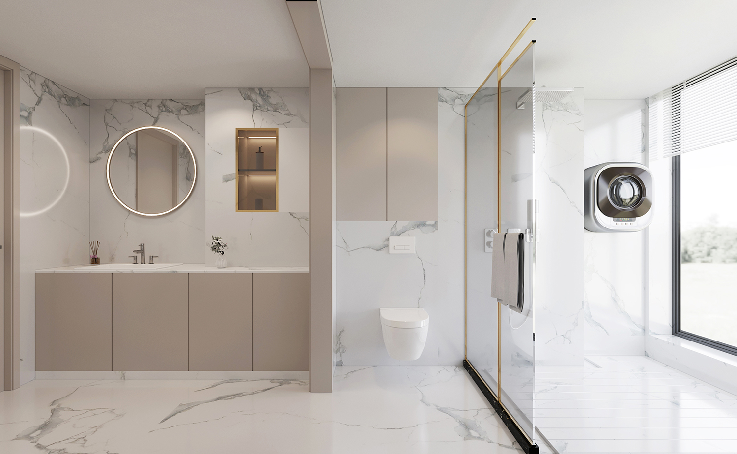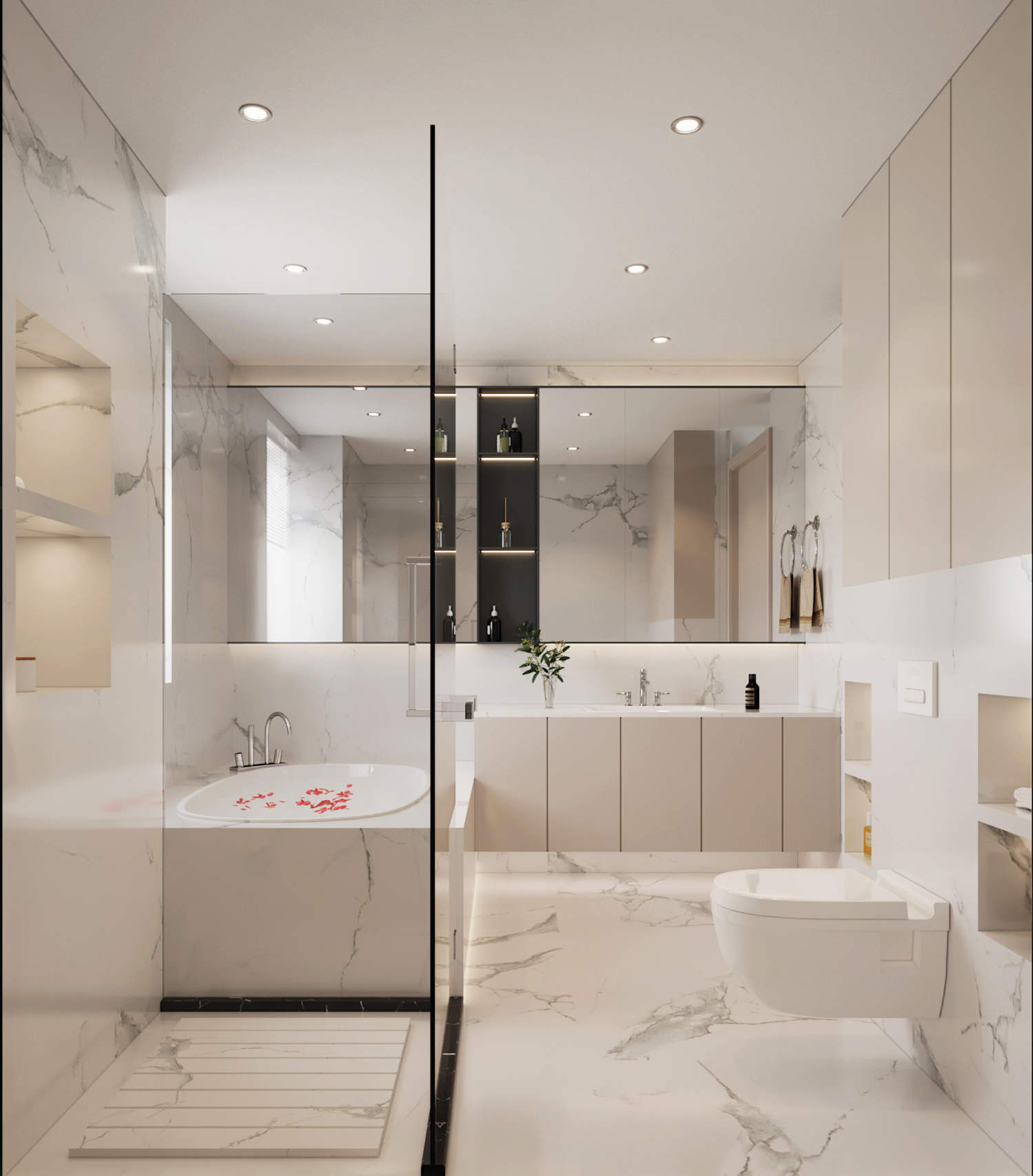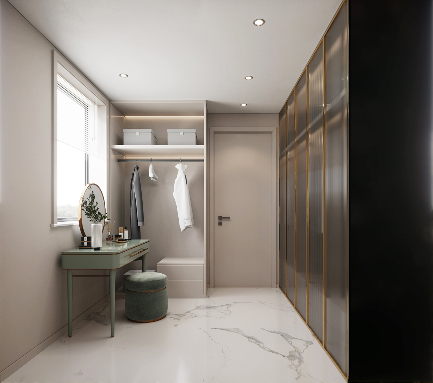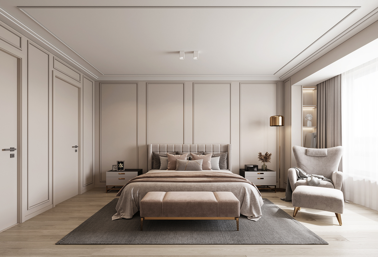 設(shè)計(jì)理念:本案地面采用灰色柔光大板瓷磚鋪貼,讓空間顯得更加純粹且寬敞。超大的開間給予居住者開闊的視覺體驗(yàn),搭配現(xiàn)代主義的家居配飾,整體氛圍簡約而時(shí)尚。