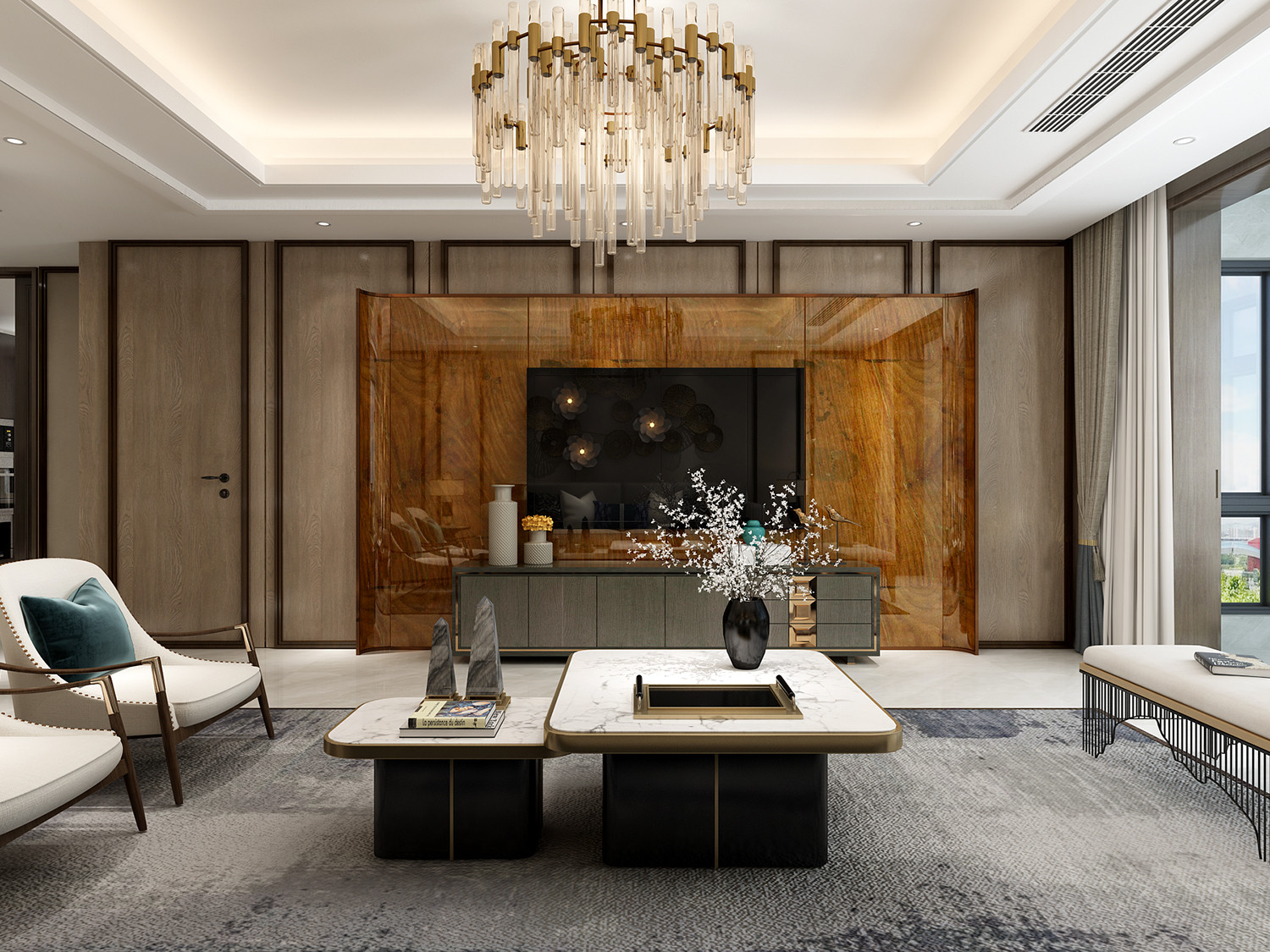 設(shè)計(jì)理念:尋一方凈土,享四時(shí)交替。本案布局陰陽(yáng)協(xié)調(diào)、色彩穩(wěn)重成熟、格調(diào)典雅質(zhì)樸、韻味濃烈悠長(zhǎng)。將幽幽的意境之美與現(xiàn)代的利落簡(jiǎn)約相糅合,打造出經(jīng)典的新中式風(fēng)格住宅。