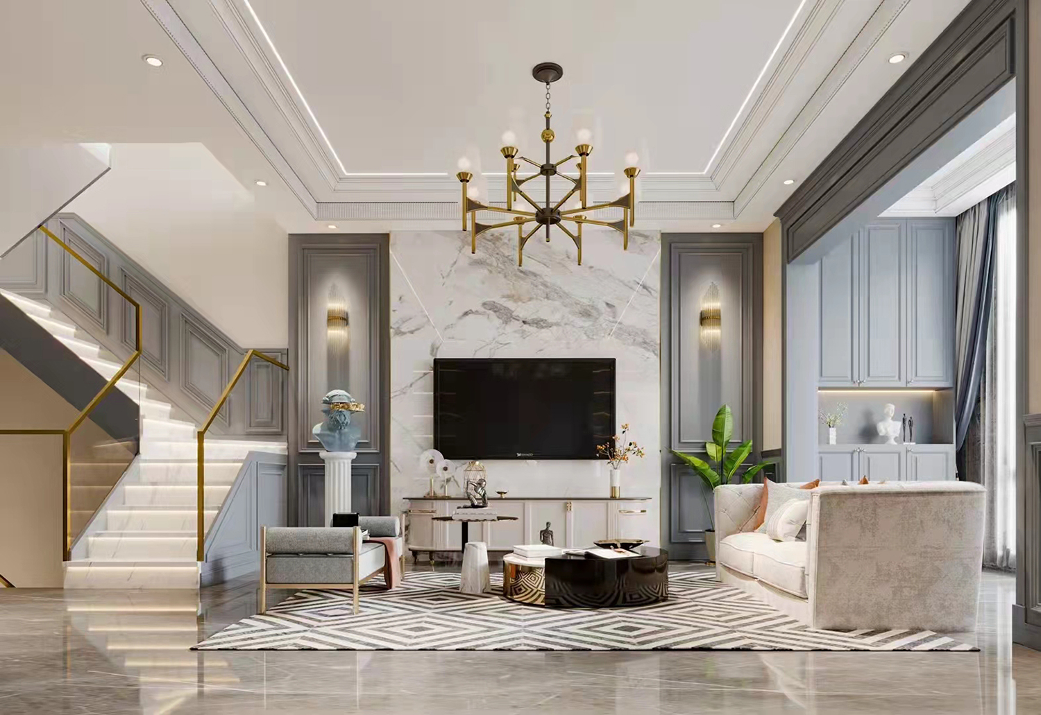 設(shè)計理念:1、本案設(shè)計師根據(jù)屋主本身的氣質(zhì)去規(guī)劃空間布局,將細(xì)膩的質(zhì)感融入設(shè)計細(xì)節(jié),使空間整體具有強烈的藝術(shù)張力和情感表現(xiàn)力。更將復(fù)雜的設(shè)計元素及使用需求,以鮮明生動的方式呈現(xiàn)出來。