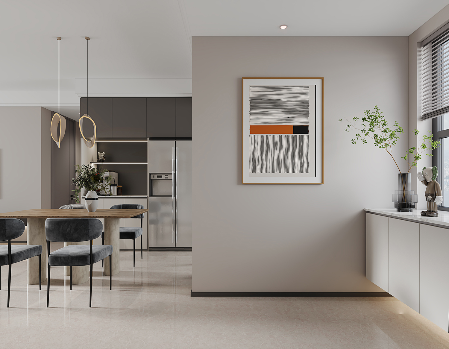 設計理念:本案業(yè)主夫婦平日工作繁忙,節(jié)奏快壓力大,希望新家是個能讓人身心放松,有溫度的空間。在充分尊重業(yè)主喜好的同時適當地通過空間語言去表現“家”的意義,秉承隨性自然的設計理念,使之成為家庭情感的聯結。