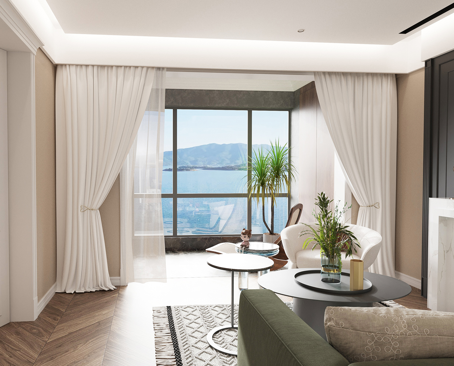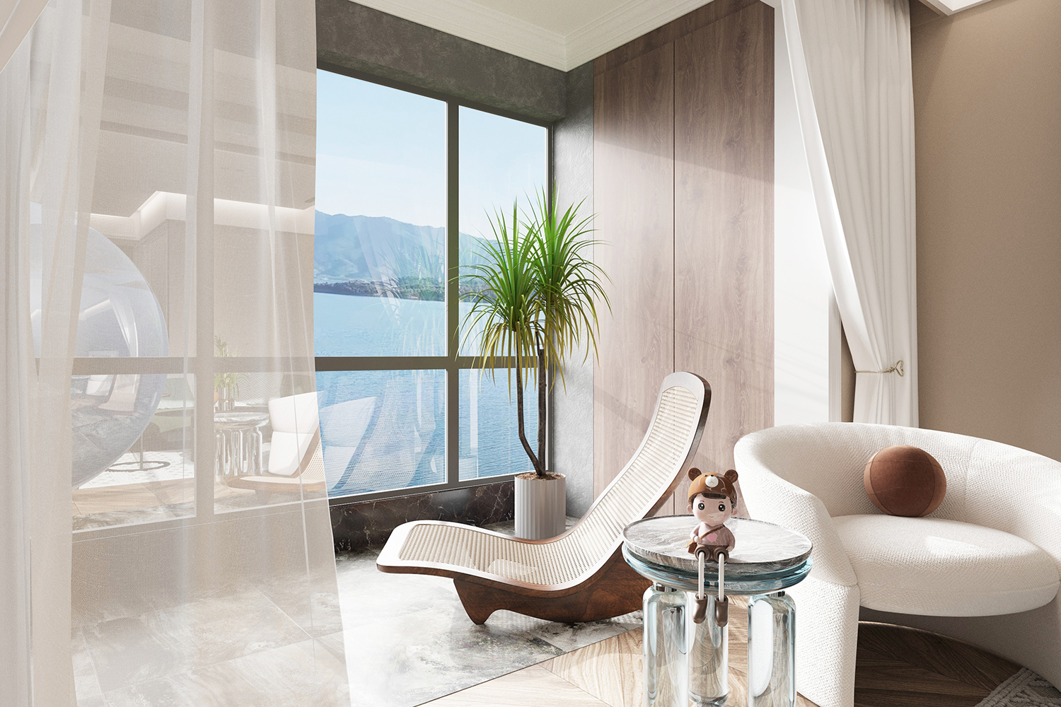 設計理念:作為度假的房子來說,空間的大小是次要的湖邊的景色才是重中之重,工作之余一家人慵懶的呆在度假村屬于自己的套房內,要享受足夠的湖景帶來的愉悅,還要舒舒服服的慵懶的床上沙發(fā)上,節(jié)奏慢下來做個想嘗試已久的拿手大菜與家人分享,生活輕松愜意。