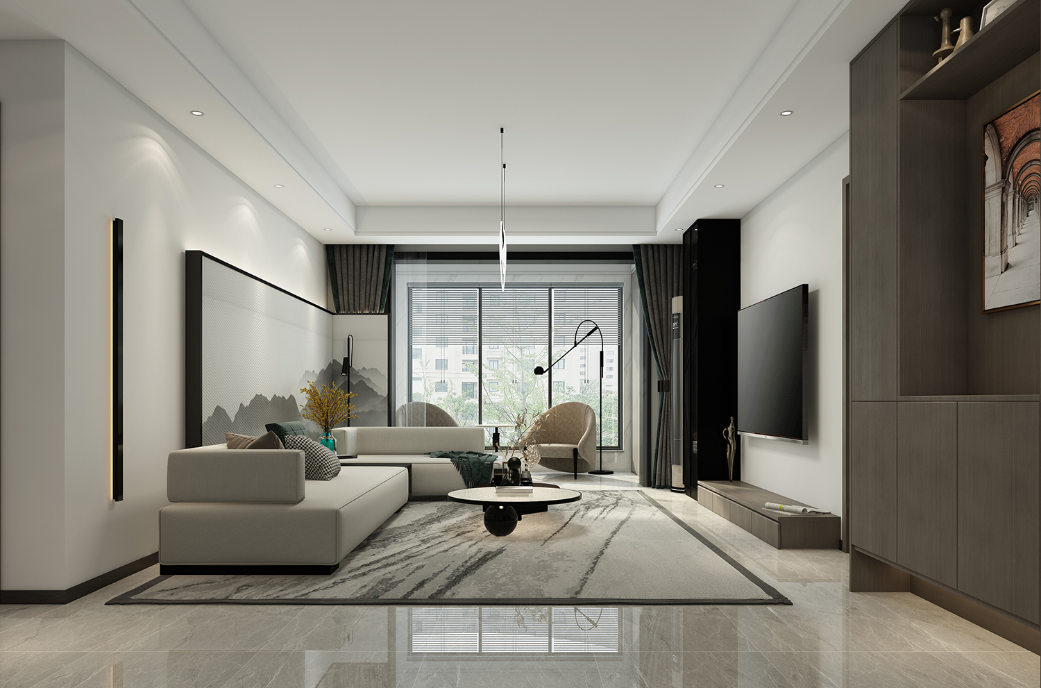 設(shè)計(jì)理念:現(xiàn)代的風(fēng)格融匯了一些中式的元素,入戶玄關(guān)增加了線性光源巧妙的進(jìn)行了兩個(gè)區(qū)域之間的劃分,客廳中式屏風(fēng)讓主人在沙發(fā)上時(shí)有一個(gè)更好的包圍感,中式元素少而巧。