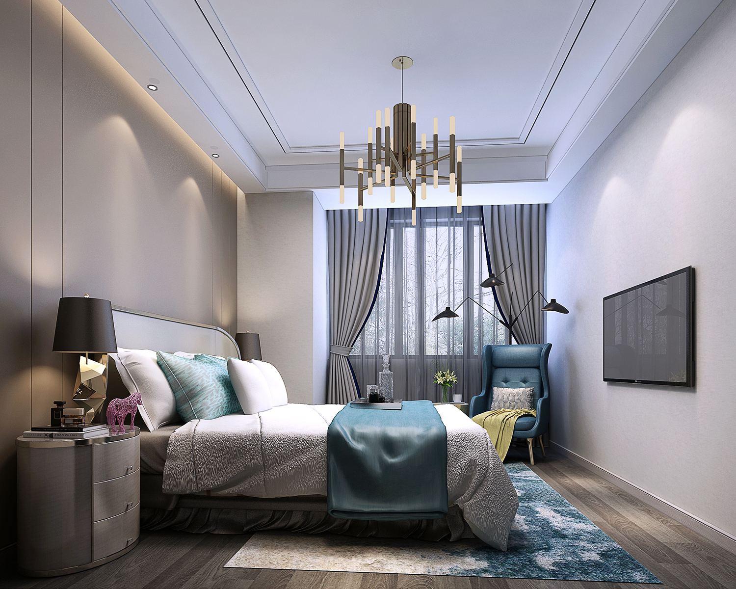 設計理念:本案例業(yè)主夫婦三十多歲,喜歡極簡北歐風,整個空間干凈整潔,煙青灰感覺,使得空間感落落大方