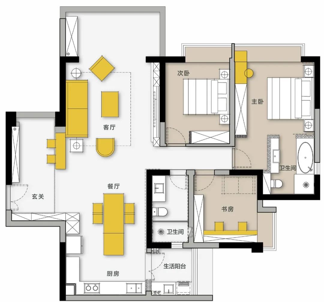 L型地臺(tái)區(qū)增加線(xiàn)形光源,為換鞋提供便利也詮釋出立體豐盈層次感。在踏進(jìn)空間的第一時(shí)間,就能感受到細(xì)節(jié)的舒適與妥帖。