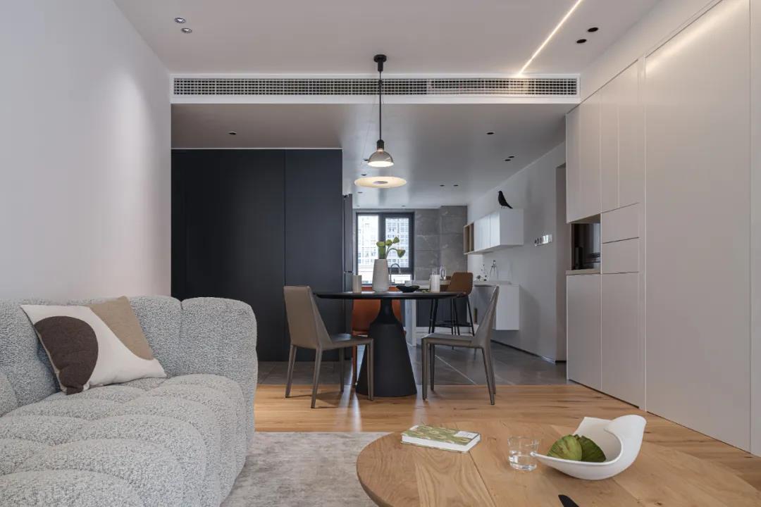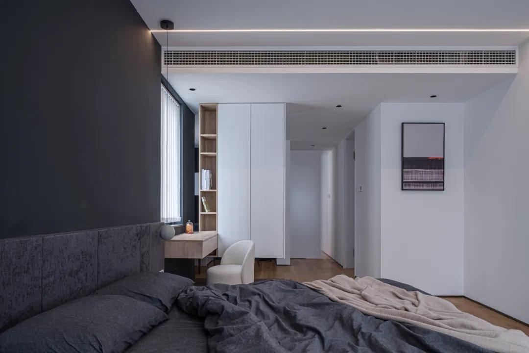 考慮女主人有夜班的工作性質(zhì),我們用深灰色打造能助力白天的適眠環(huán)境。擺設(shè)從簡(jiǎn),在平靜且克制的基調(diào)中,創(chuàng)造空間的融合。