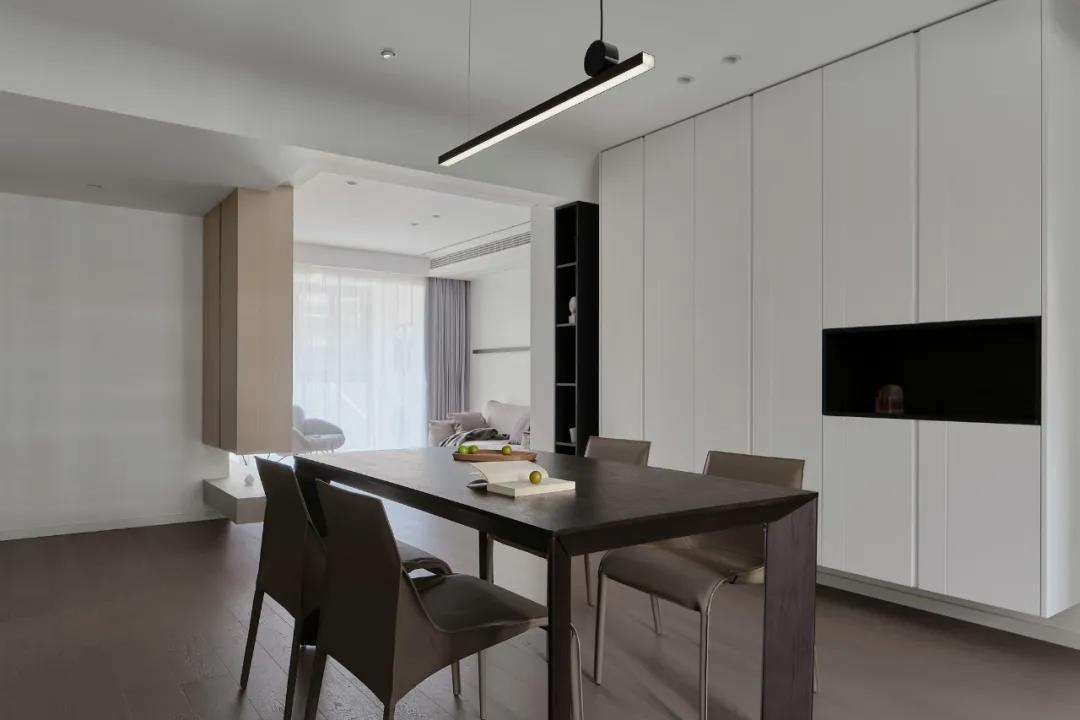 聯(lián)通客餐廳和陽臺后,室內采光通透,視野開闊。局部的燈光點綴,讓簡約的空間不會那么單調,反而散發(fā)出恰到好處的溫柔。