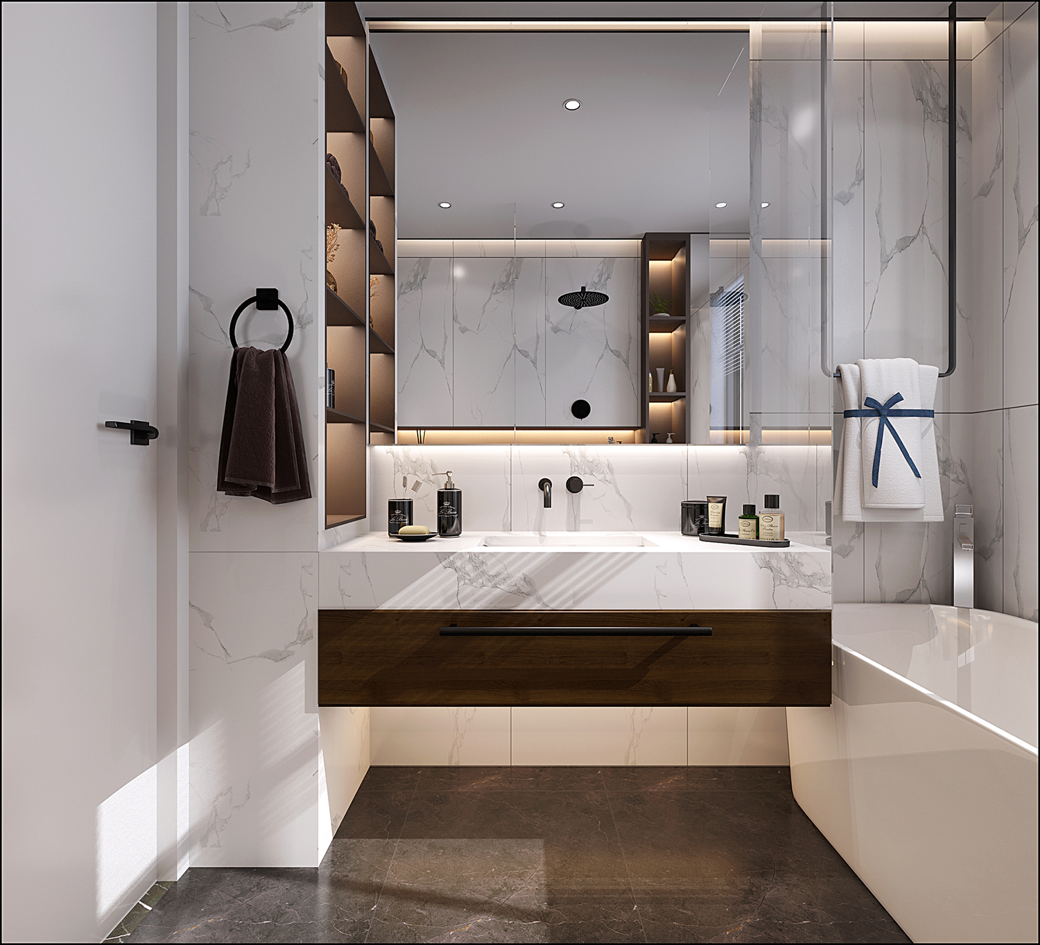 設(shè)計(jì)理念:暖灰色地面融合沉穩(wěn)厚重的木質(zhì)飾面,玄關(guān)入戶處的金屬質(zhì)感將視線延伸入內(nèi),運(yùn)用不同的色彩、材質(zhì)、肌理,在靜態(tài)中詮釋交融的美感,生活為什么如此美好?因?yàn)槲覀儼言?shī)情畫意了然于心,付之于家。
