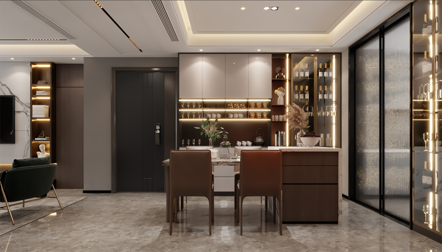 本案特點(diǎn):此戶(hù)型風(fēng)格定義為現(xiàn)代簡(jiǎn)約輕著,公共區(qū)域的整體色調(diào)保持嚴(yán)格的協(xié)調(diào)統(tǒng)一,摒棄多余的裝飾元素,盡可能的還原結(jié)構(gòu)本身帶來(lái)的開(kāi)闊和明朗