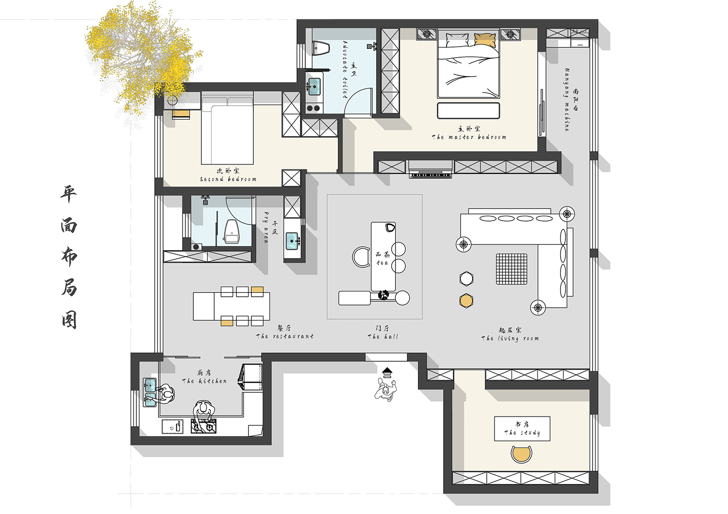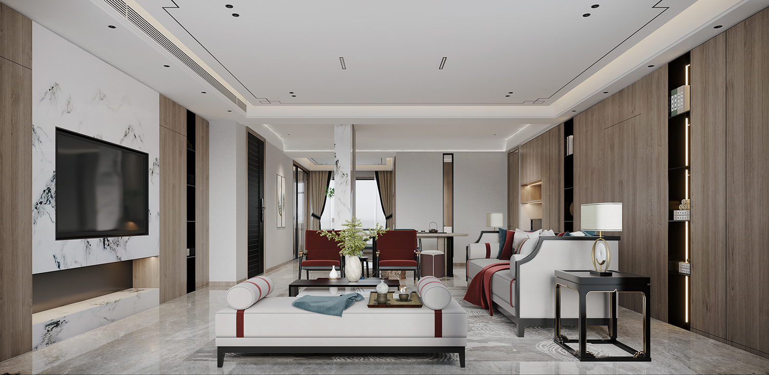設(shè)計(jì)理念:此戶型風(fēng)格定義為新中式,用室內(nèi)建筑的概念去把握空間的對(duì)位關(guān)系,布局開(kāi)敞,開(kāi)放式的茶室與客廳融為一體,寬敞別致又靈活多變。游走在流轉(zhuǎn)的動(dòng)線,都經(jīng)過(guò)精心計(jì)算,理性之美隱約可見(jiàn)。淺灰色系大板磚,無(wú)主燈設(shè)計(jì),極簡(jiǎn)的設(shè)計(jì)理念不張揚(yáng)卻提供了恰當(dāng)?shù)谋尘耙r托。更能顯出低調(diào)奢華的新中式之美。