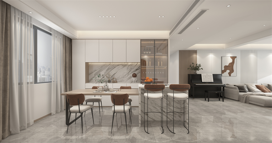 設(shè)計(jì)理念:輕奢風(fēng)設(shè)計(jì)手法展現(xiàn)出輕的特點(diǎn),用利落的線條設(shè)計(jì),極簡(jiǎn)而不隨意,硬裝設(shè)計(jì)簡(jiǎn)潔