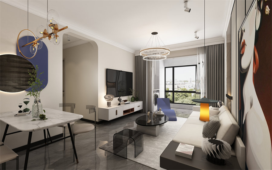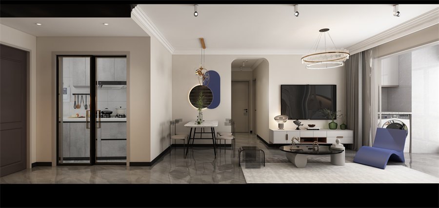 設計理念:現(xiàn)代簡約用幾何線條修飾,外觀簡潔流暢,合理運用色塊色帶處理的一種裝修風格