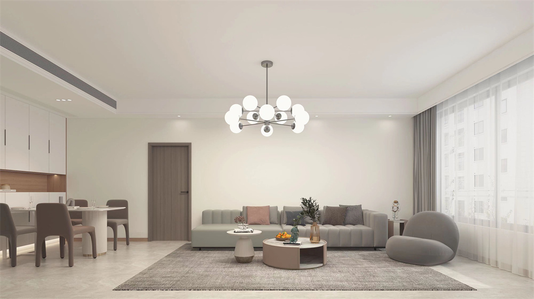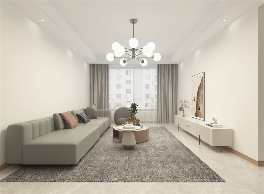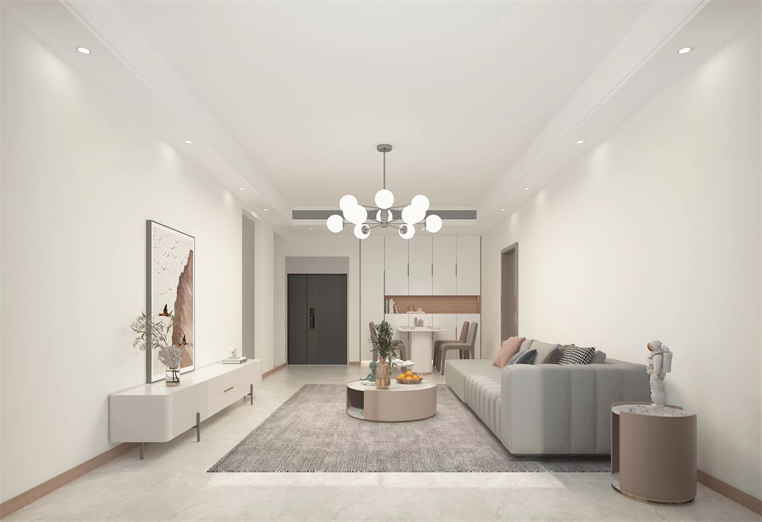 客廳墻面以乳膠漆為主,取消電視的設(shè)計,強(qiáng)化空間感。
