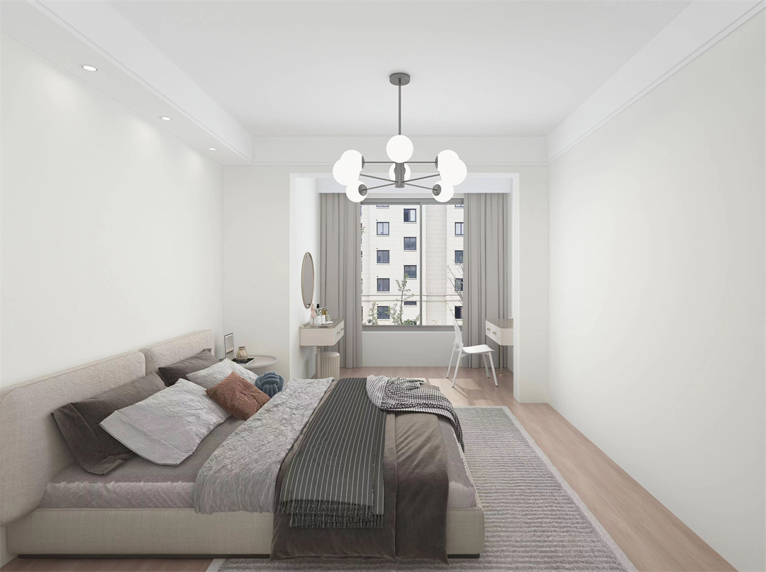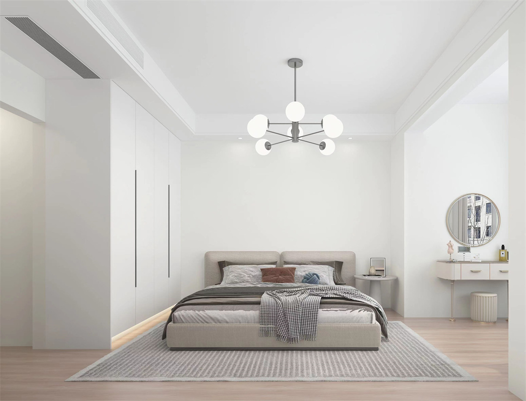 主臥將陽臺擴(kuò)入,做梳妝臺,讓梳妝動線更加流暢,空間也得到了合理利用。