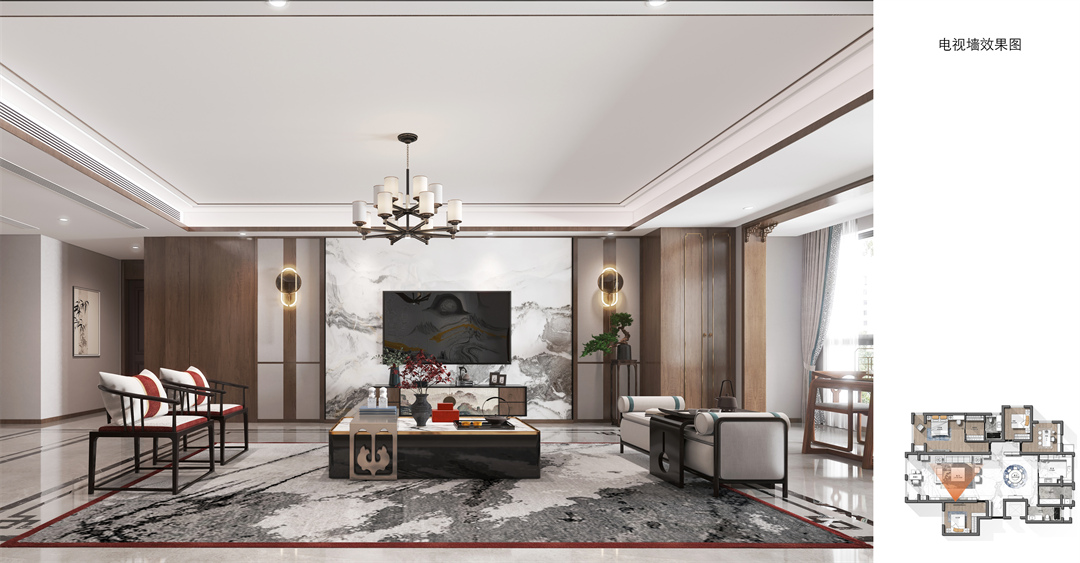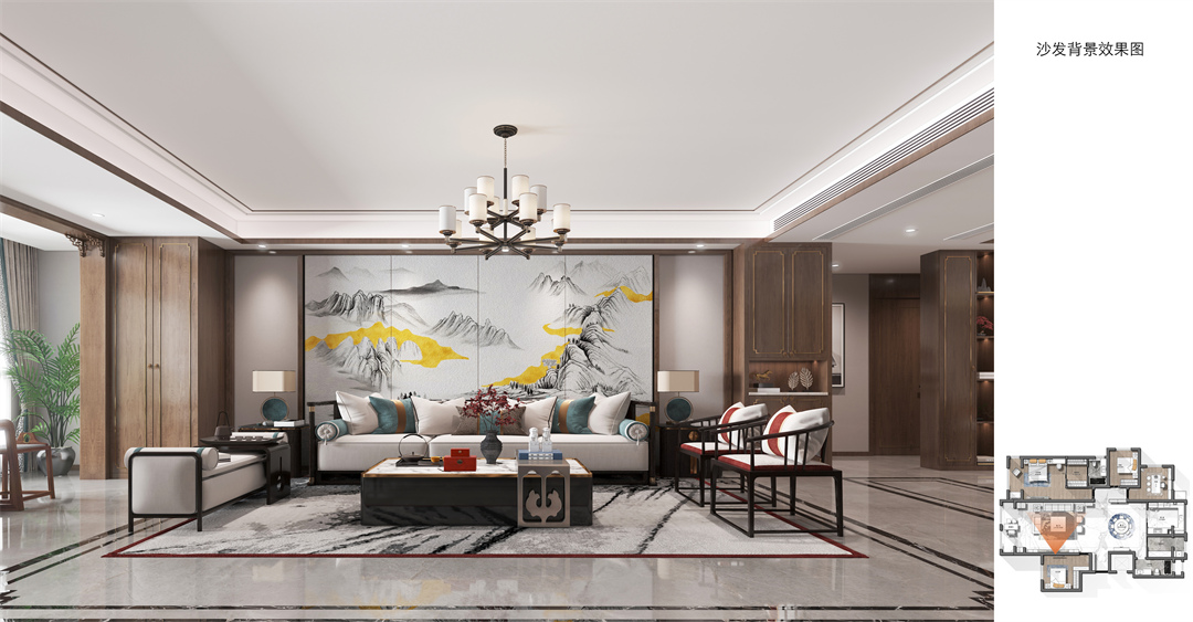 本案特點(diǎn):將美好生活情境推呈至整個(gè)空間,構(gòu)建“恬淡中和、翰墨飄香”的人文雅居。