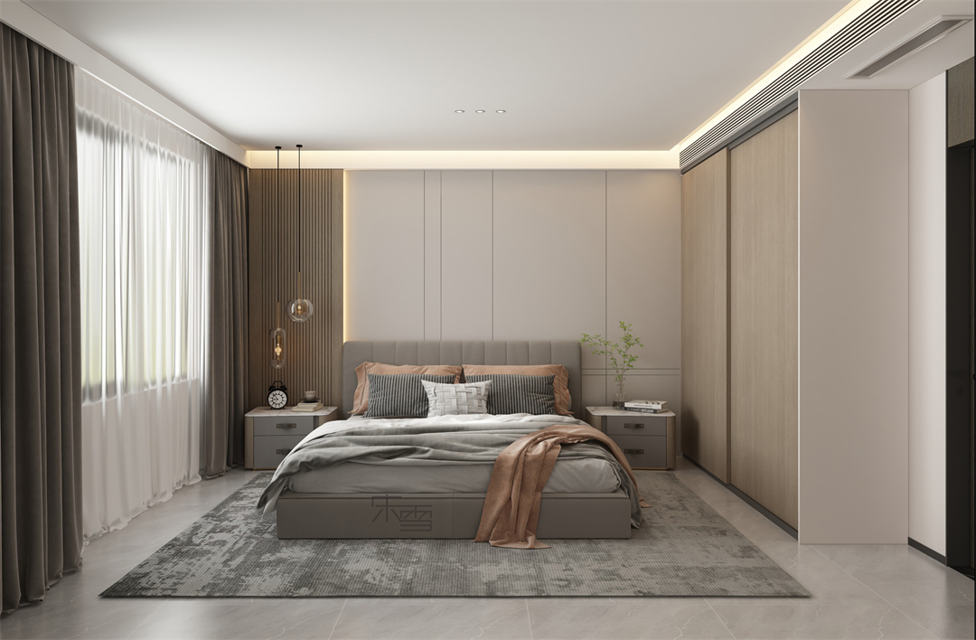 老人房為無主燈設(shè)計(jì),反光燈槽提亮空間。