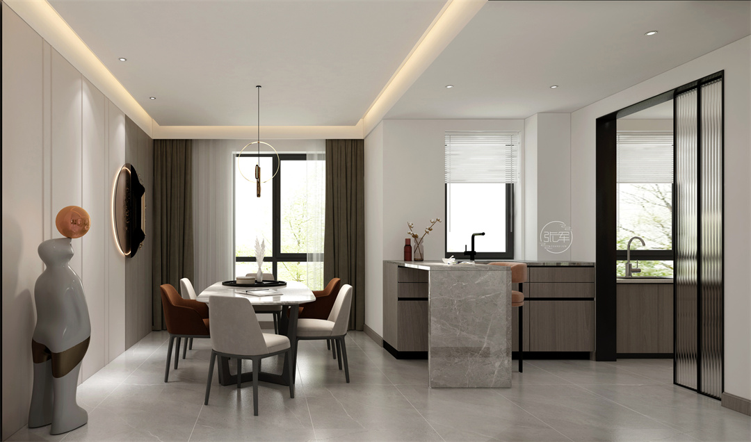 餐廚開(kāi)放式設(shè)計(jì),以島臺(tái)作為空間功能分區(qū),將功能連接。