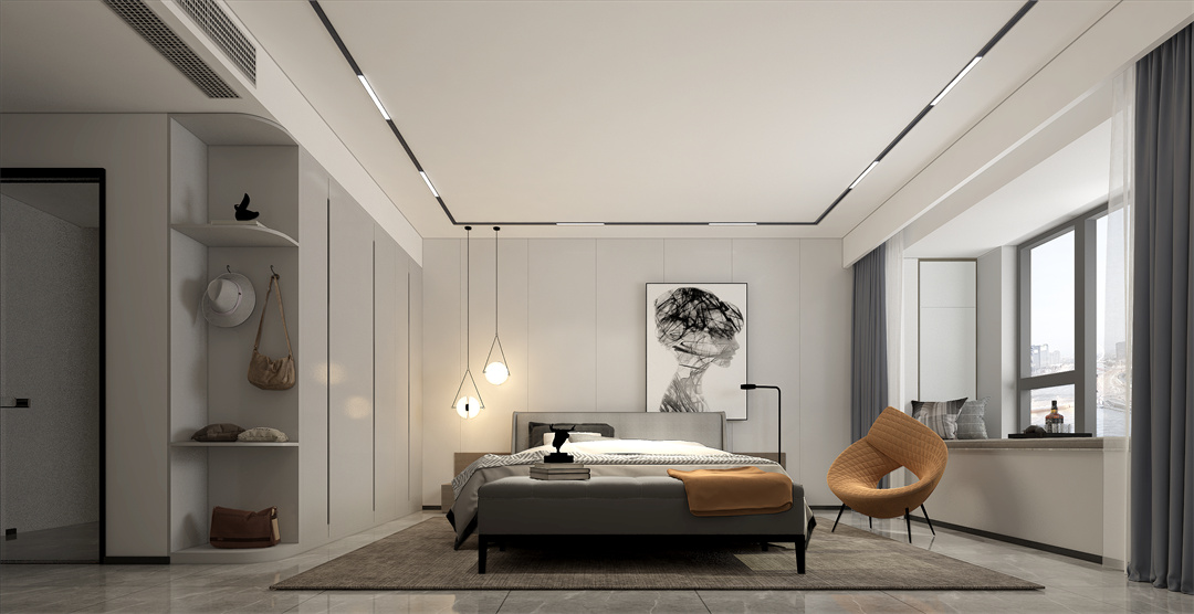 主臥空間感很強(qiáng),簡(jiǎn)約透著日式的寧靜,可以包容生活中所有的情緒,給心靈一處回歸的居所。