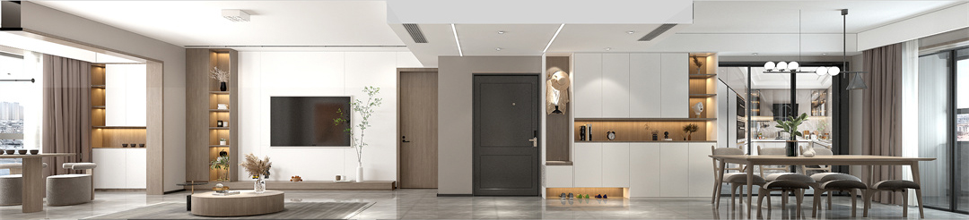 設(shè)計(jì)理念:本案常住六口人,三代同堂,要求盡可能保持空間的干凈整潔,保證功能區(qū)的互動(dòng)以及整體結(jié)構(gòu)的舒適。設(shè)計(jì)師結(jié)合業(yè)主需求,以日式簡(jiǎn)約風(fēng)格定義空間,通過最簡(jiǎn)潔的設(shè)計(jì)語言表達(dá),細(xì)膩的紋理與色調(diào)和諧而統(tǒng)一,展現(xiàn)極致的現(xiàn)代美感,東方的舒適與愜意。