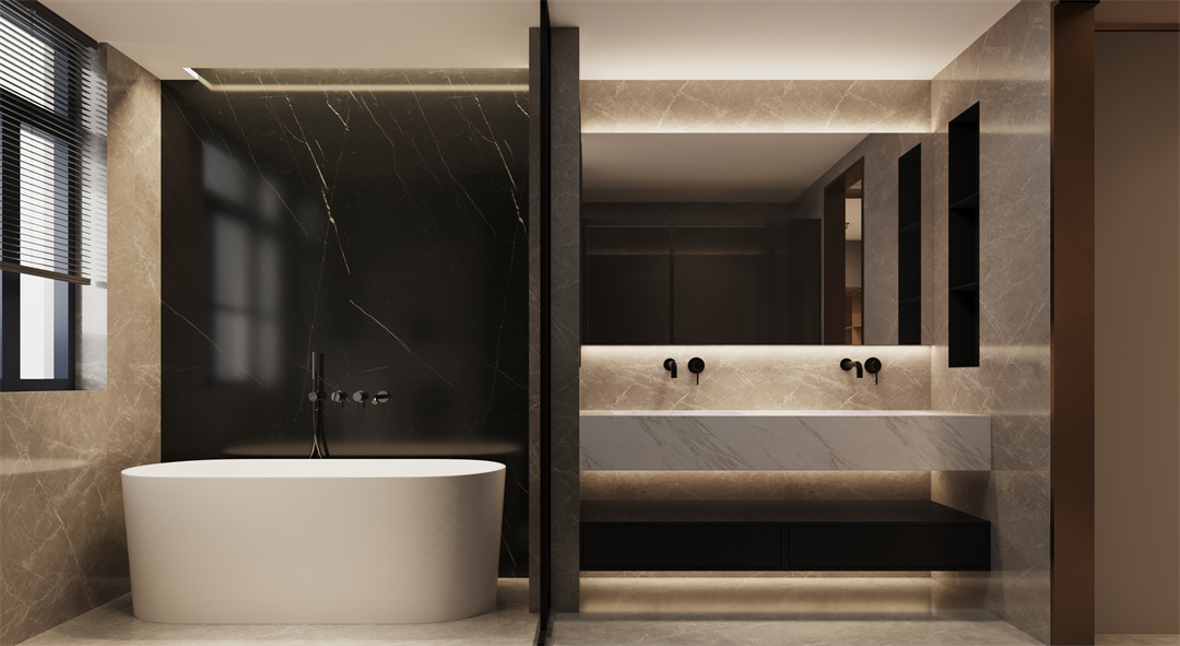 衛(wèi)生間設(shè)計(jì)簡(jiǎn)潔大方,干濕分離的設(shè)計(jì),浴缸、花灑滿足不同生活需求。