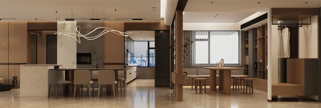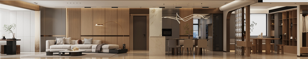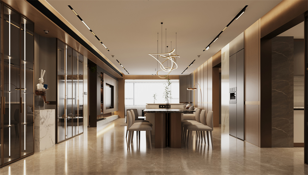 客餐廳整個(gè)空間給人帶來一種輕奢優(yōu)雅的視覺感官,懸浮吊頂?shù)脑O(shè)計(jì)以及每個(gè)細(xì)節(jié)的展示,更是藝術(shù)的表現(xiàn),在每一個(gè)空間里都能讓人感受到驚喜。