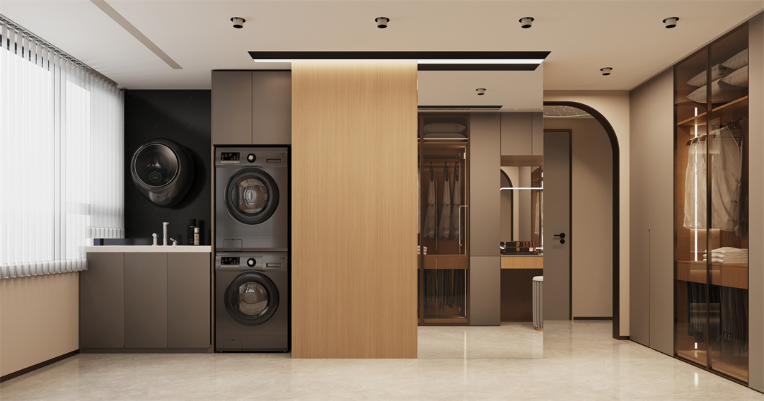 洗衣機(jī)+烘干機(jī)放在衣帽間的另一側(cè),簡(jiǎn)直是“懶人”必備。