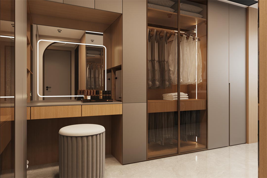 衣帽間是女主人最愛的空間,頂天立地的衣柜設(shè)計(jì),一字型拉手讓空間更顯簡(jiǎn)潔。
