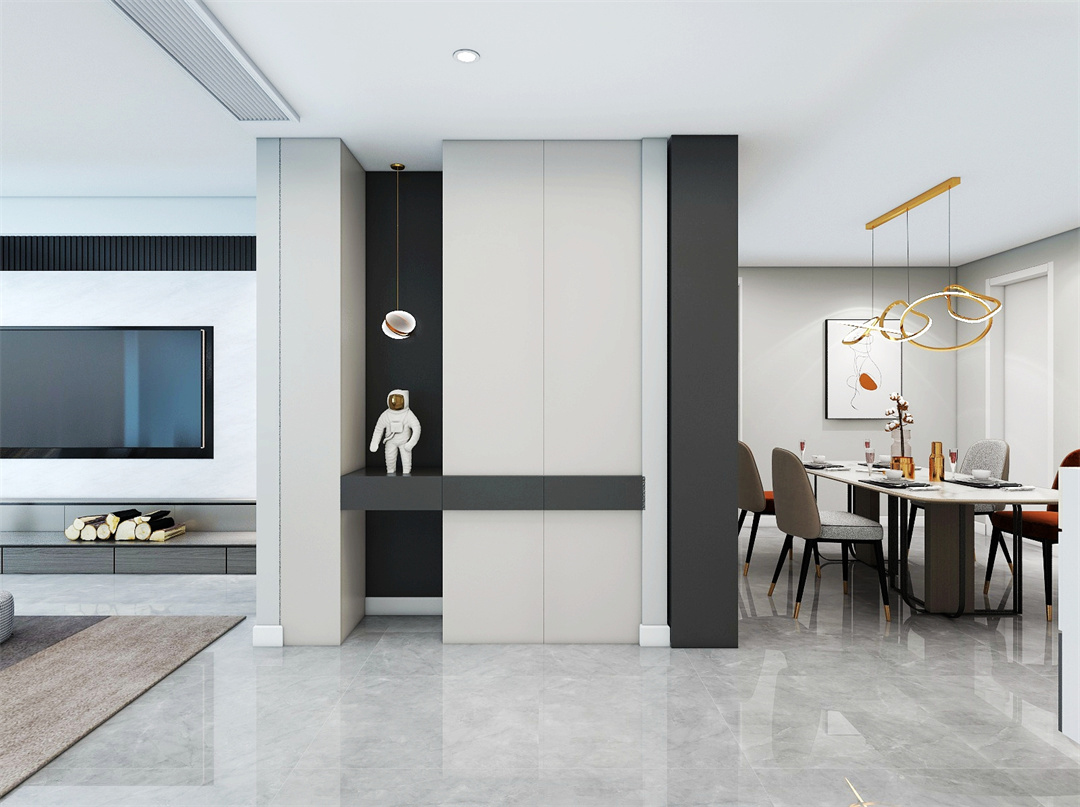 走廊盡頭是端景,既是收納柜也起到了裝飾作用。