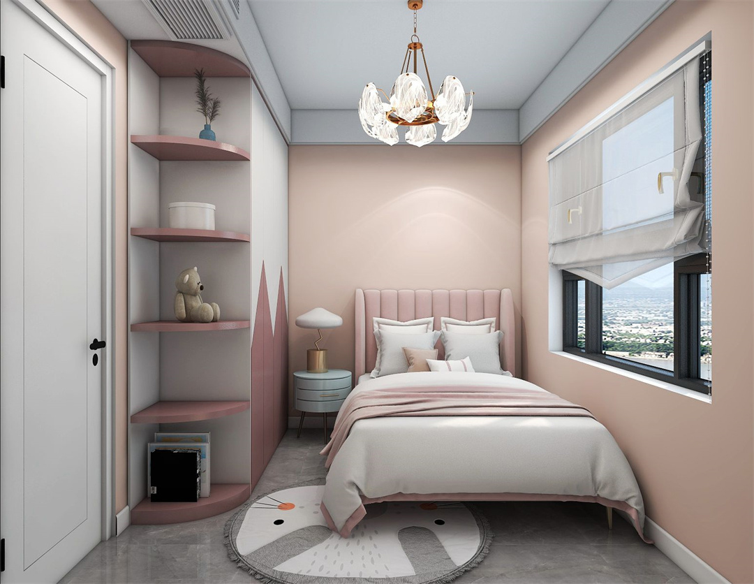 女兒房同樣選擇雙眼皮吊頂,粉色乳膠漆通刷。