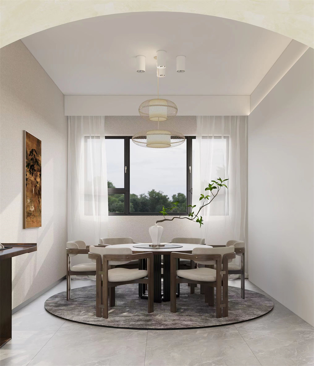 本案特點(diǎn):以一些簡(jiǎn)約的造型為基礎(chǔ),添加了中式元素,使整體空間感覺更加豐富,大而不空、厚而不重,有格調(diào)又不顯壓抑。