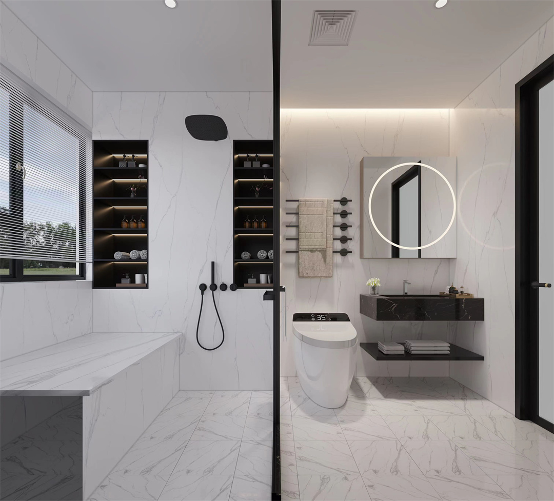 衛(wèi)生間干濕分離,玻璃隔斷,更顯敞亮大氣。