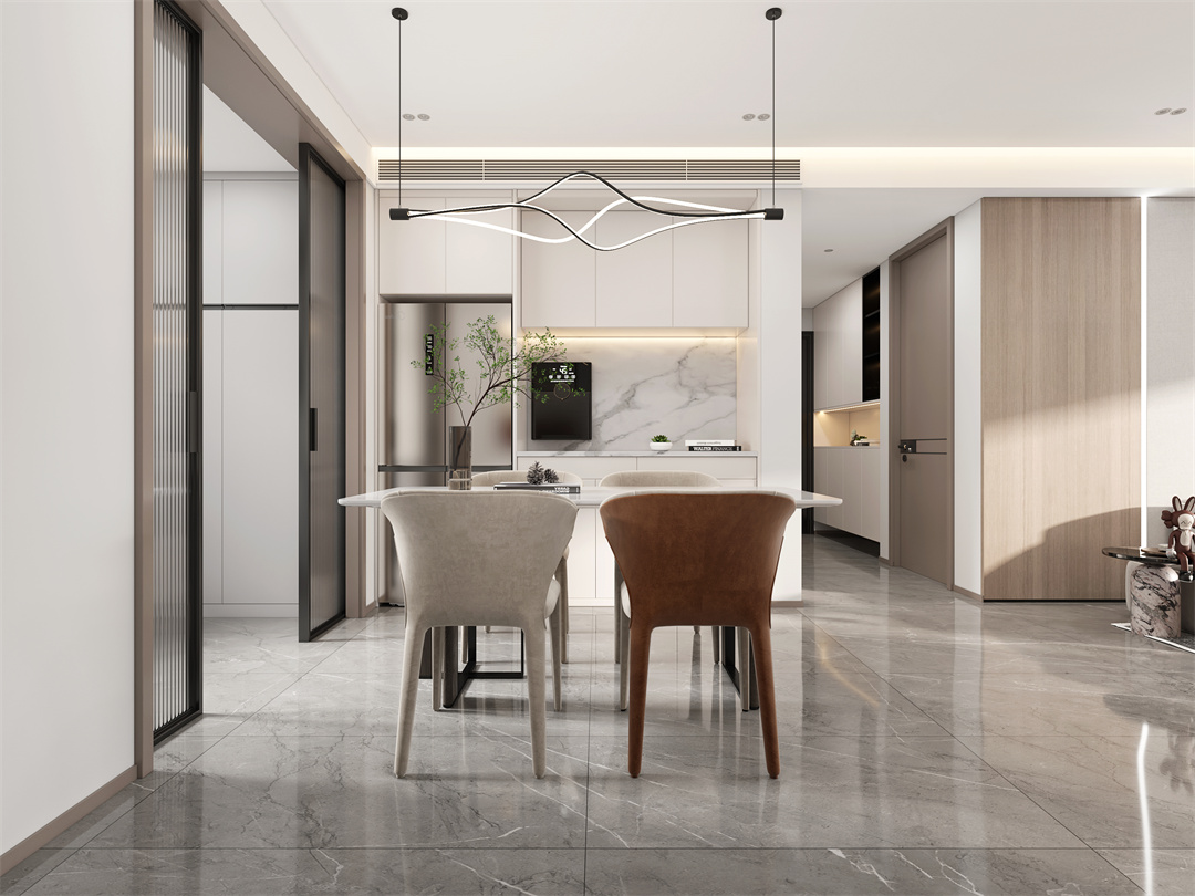 餐廳與客廳連貫的硬裝設(shè)計(jì),使得空間感更加高級優(yōu)雅而統(tǒng)一大氣。