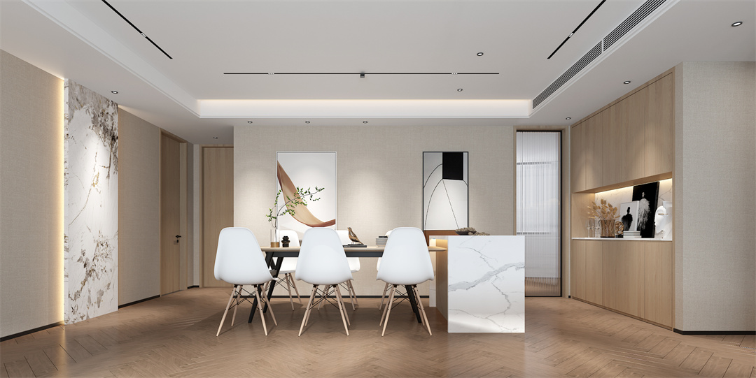 餐廳與客廳相連通,開放式的空間,用餐也能時(shí)刻感受周圍鋪灑的陽光,中島吧臺(tái)設(shè)計(jì)前衛(wèi)時(shí)尚,已成為時(shí)下年輕人追捧的元素之一。