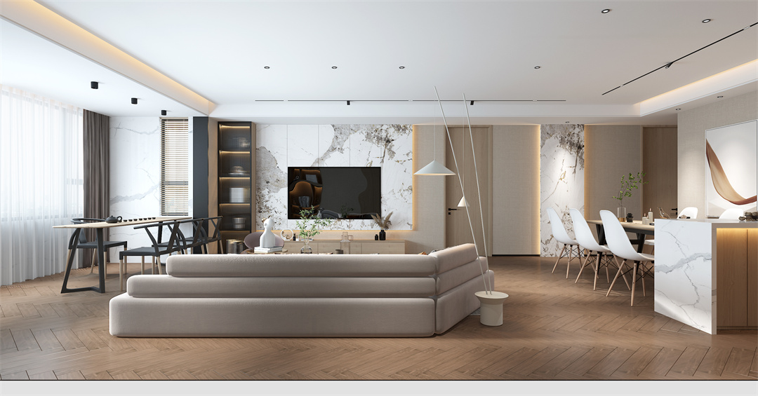 客廳空間主要選用了木紋地磚,簡(jiǎn)樸的紋理讓空間有了深層的質(zhì)感。搭配精致的家具、利落的線條,開闊的空間為整個(gè)設(shè)計(jì)帶來了極致舒適的感覺,除了要滿足正常的生活需求外,也要對(duì)藝術(shù)的審美得到展現(xiàn)。