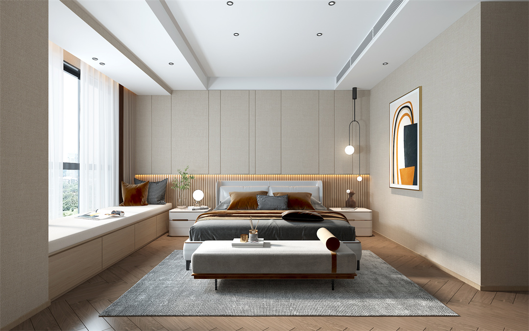 臥室,永遠(yuǎn)是身體和靈魂最舒適放松的場(chǎng)所。舒適、自由、實(shí)用而又不擁擠是戶主最大的要求。