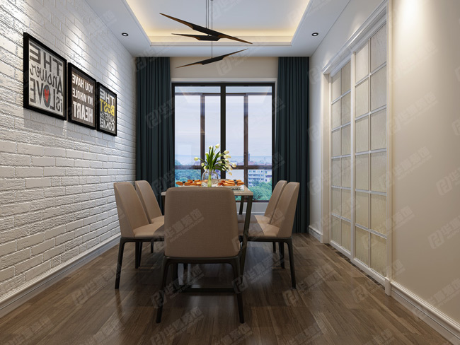 餐廳,滿(mǎn)墻的文化磚在訴說(shuō)著頗有年代感的故事,像在鏡子里,像在時(shí)間外,靜靜流淌。在空間陳設(shè)上,業(yè)主還是比較注重現(xiàn)代質(zhì)感的,要簡(jiǎn)單溫馨,不乏時(shí)尚。