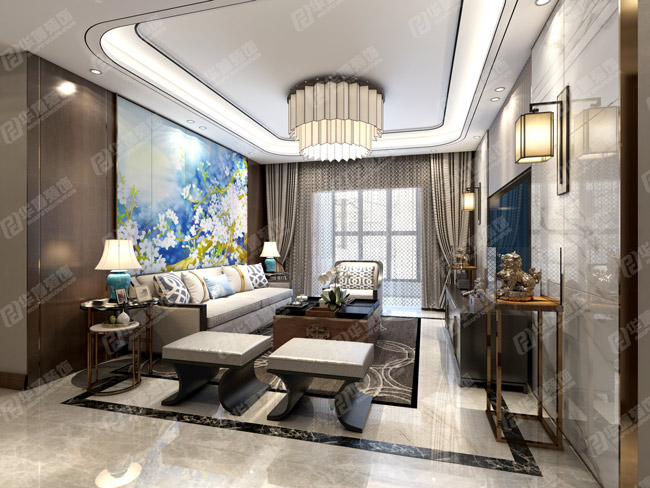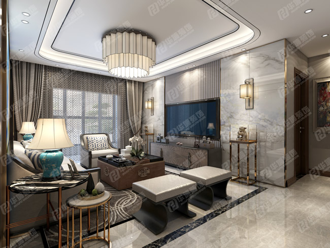 金沙湖高爾夫官邸145平新中式風(fēng)格客廳裝修效果圖