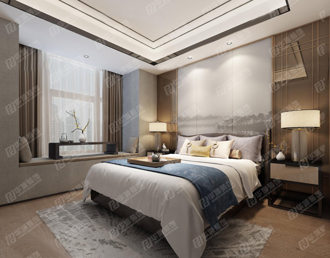 金沙湖高爾夫官邸145平新中式風(fēng)格臥室裝修效果圖