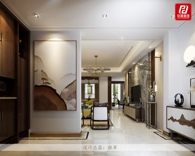 天一建苑360平復式新中式風格一樓入戶門廳裝修效果圖
