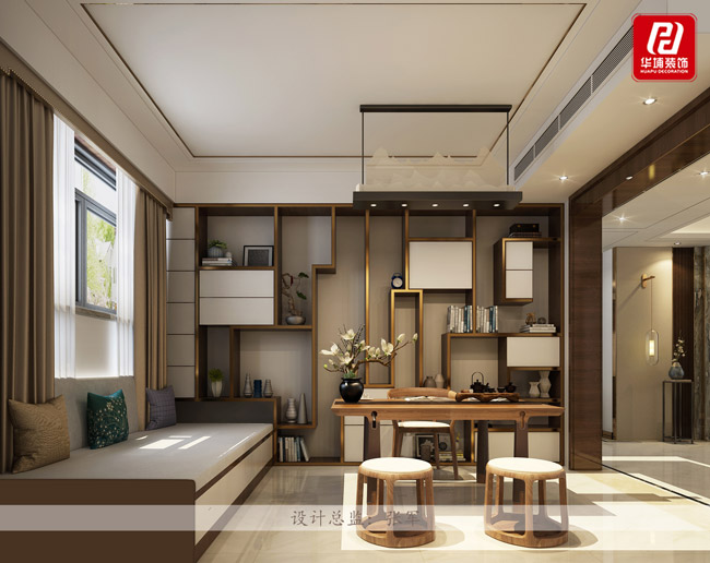 天一建苑360平復式新中式風格一樓書房裝修效果圖