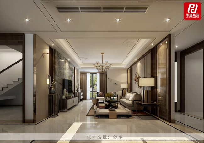 天一建苑360平復式新中式風格一樓客廳裝修效果圖