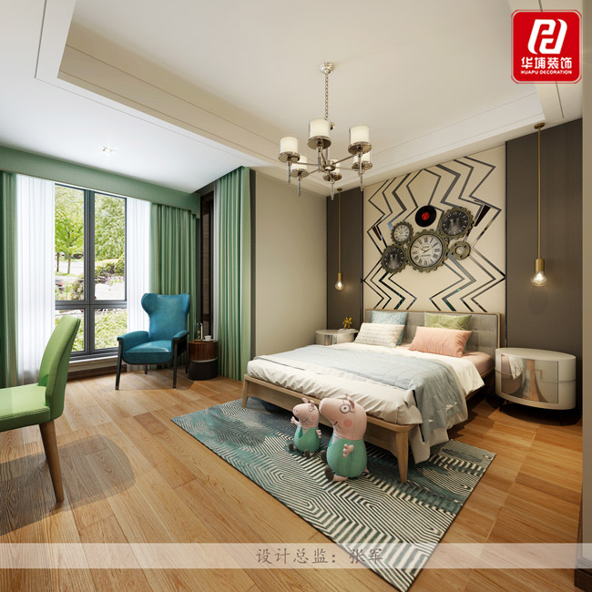 天一建苑360平復式新中式風格二樓兒童房裝修效果圖