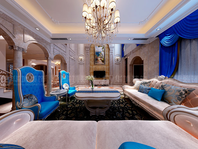 金域藍(lán)灣430平簡(jiǎn)約法式風(fēng)格客廳裝修效果圖