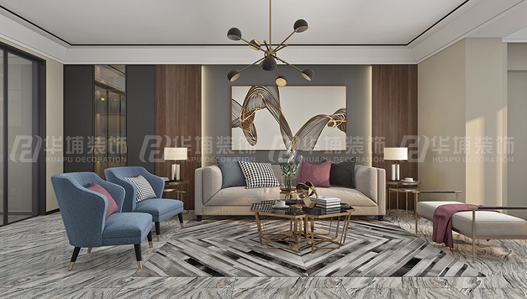 設計理念:此戶型風格定義為輕奢風格。采用大膽的灰色,藍色以及玫紅色做搭配,張揚卻不失品味,層次豐富。