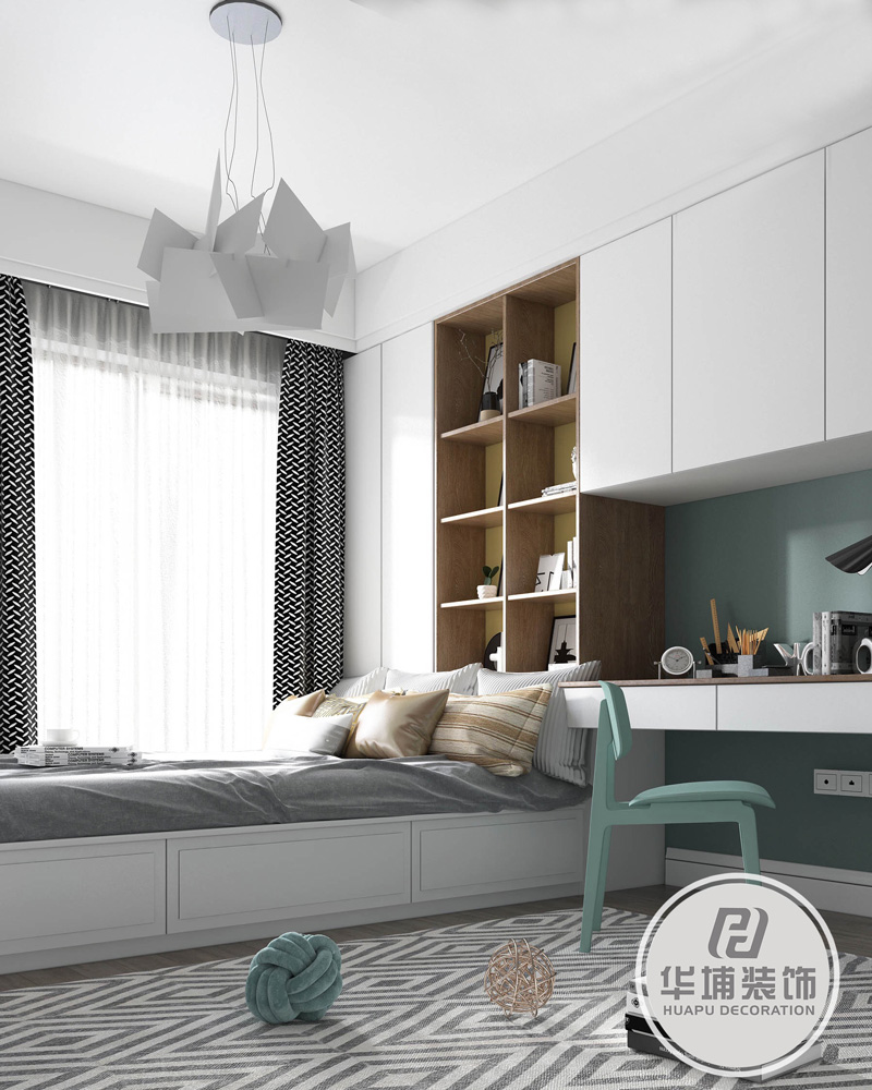 設(shè)計(jì)理念:對(duì)空間利用和收納比較關(guān)注,同時(shí)希望給三個(gè)孩子充足的學(xué)習(xí)和互動(dòng)空間,所以將原有的陽臺(tái)打掉改為升降臺(tái)式榻榻米,既可以學(xué)習(xí)看書,也放方便孩子玩耍。同時(shí)在餐廳處設(shè)置卡座空間,充分利用卡座下方的儲(chǔ)物空間。兒童房采用高低床的設(shè)計(jì),可以兼容兩個(gè)寶寶的學(xué)習(xí)和休息空間。