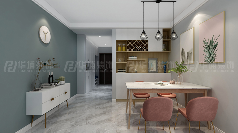 拆除原始餐廳那面墻,改成了酒柜和衣柜背對(duì)背,增加了儲(chǔ)物功能和裝飾美感